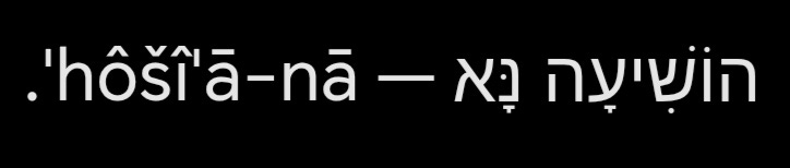 Traduși cu o rigurozitate filologică, cei doi termeni înseamnă: „Mântuiește!” (imperativ hifil al lui yasha') și „Acum!” (nā', particulă de insistență și urgență). Împreună: „Mântuiește-te acum!” sau, mai exact în spiritul original: „Salvează-te acum!”